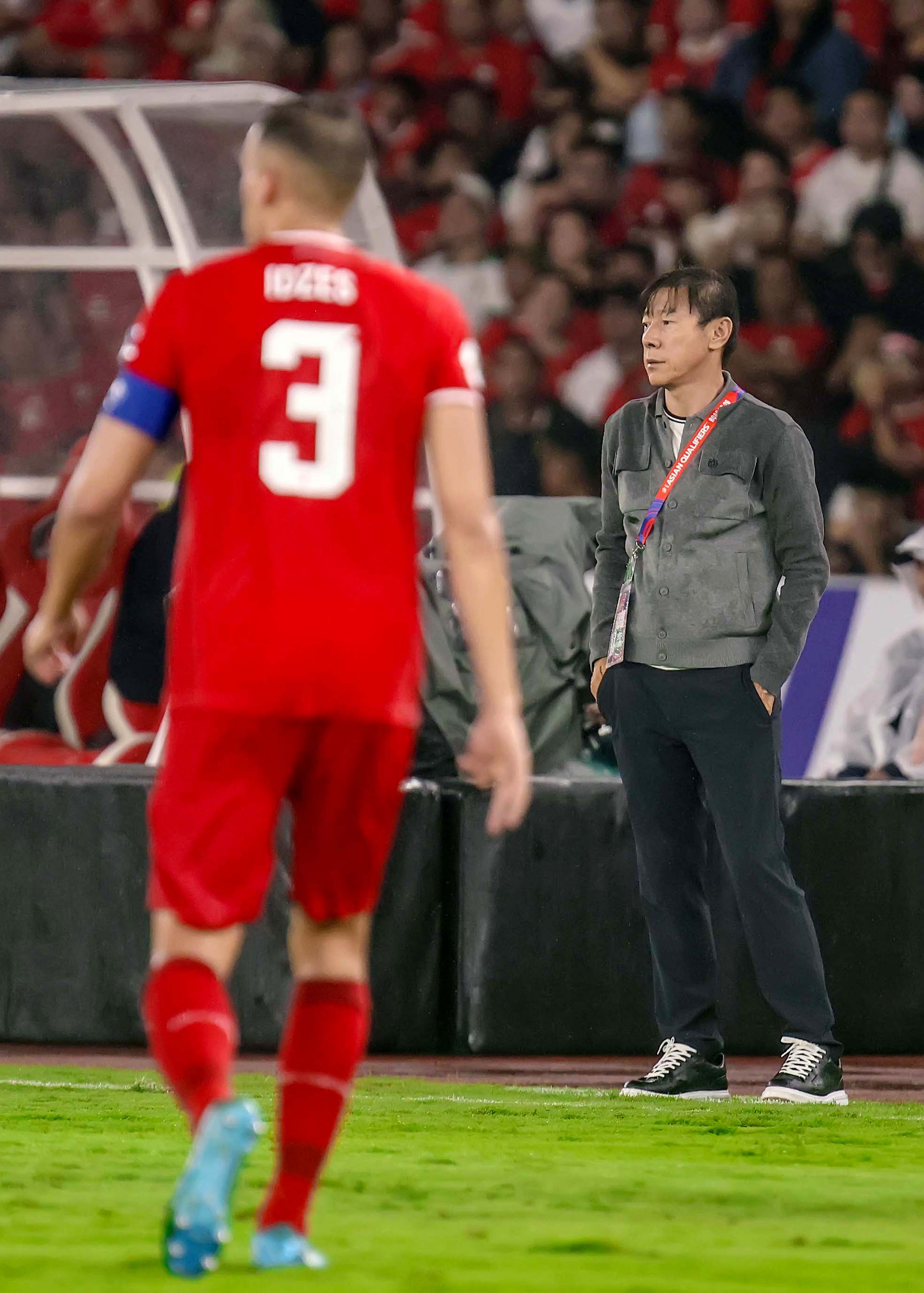 Pelatih Timnas Indonesia, Shin Tae Yong saat pertandingan melawan Timnas Jepang, pada lanjutan laga Grup C Babak Ketiga Kualifikasi Piala Dunia 2026 di Stadion Utama Gelora Bung Karno (SUGBK), Senayan, Jakarta, Jumat (15/11/2024). Timnas Indonesia kalah dari Jepang dengan skor akhir 0-4. Sportsmoment.id/Ady Sesotya