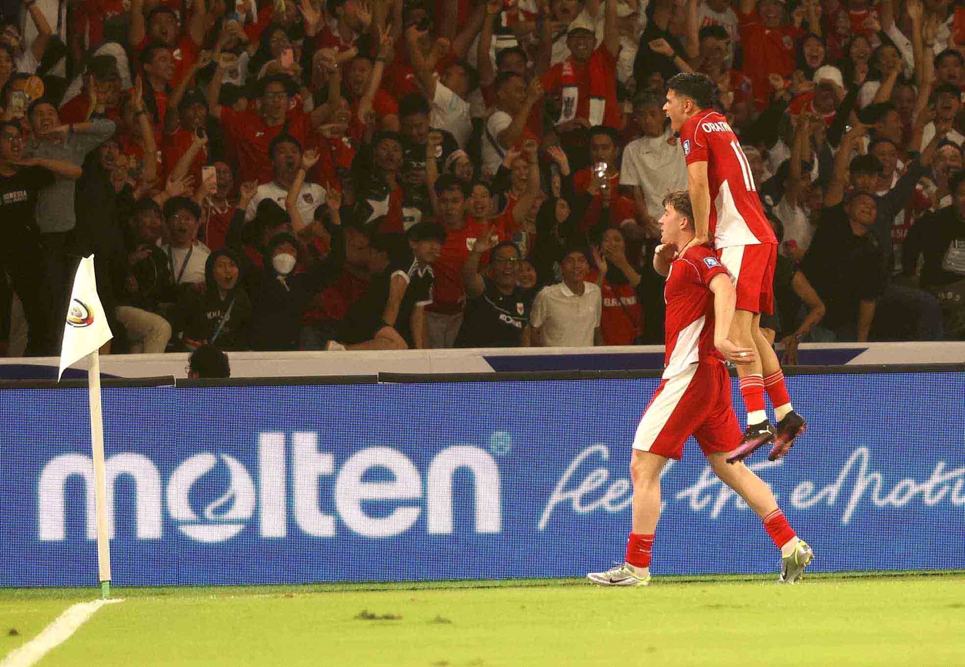 Penyerang timnas Indonesia Ole Romeny mencetak gol penentu kemenangan saat mengalahkan Bahrain 1-0 di pertandingan putaran ketiga Kualifikasi Piala Dunia 2026 di Stadion Utama Gelora Bung Karno, Senayan, Jakarta, Selasa, 25 Maret 2025. Romeny menjelaskan apa makna di balik selebrasinya itu. "Selebrasinya soal selalu menegakkan kepala," ujarnya saat konferensi pers usai laga. "Selalu bekerja keras dan ini menjadi pesan juga bagi anak-anak muda Indonesia dan semuanya, ketika kita sedang dalam situasi sulit, kita harus tetap menegakkan kepala." Gol-gol yang dia cetak kerap dipersembahkan kepada neneknya. Romeny diketahui memiliki darah Indonesia dari neneknya yang berasal dari Medan, Sumatera Utara. Photo Erly Bahtiar/sportsmoment.id