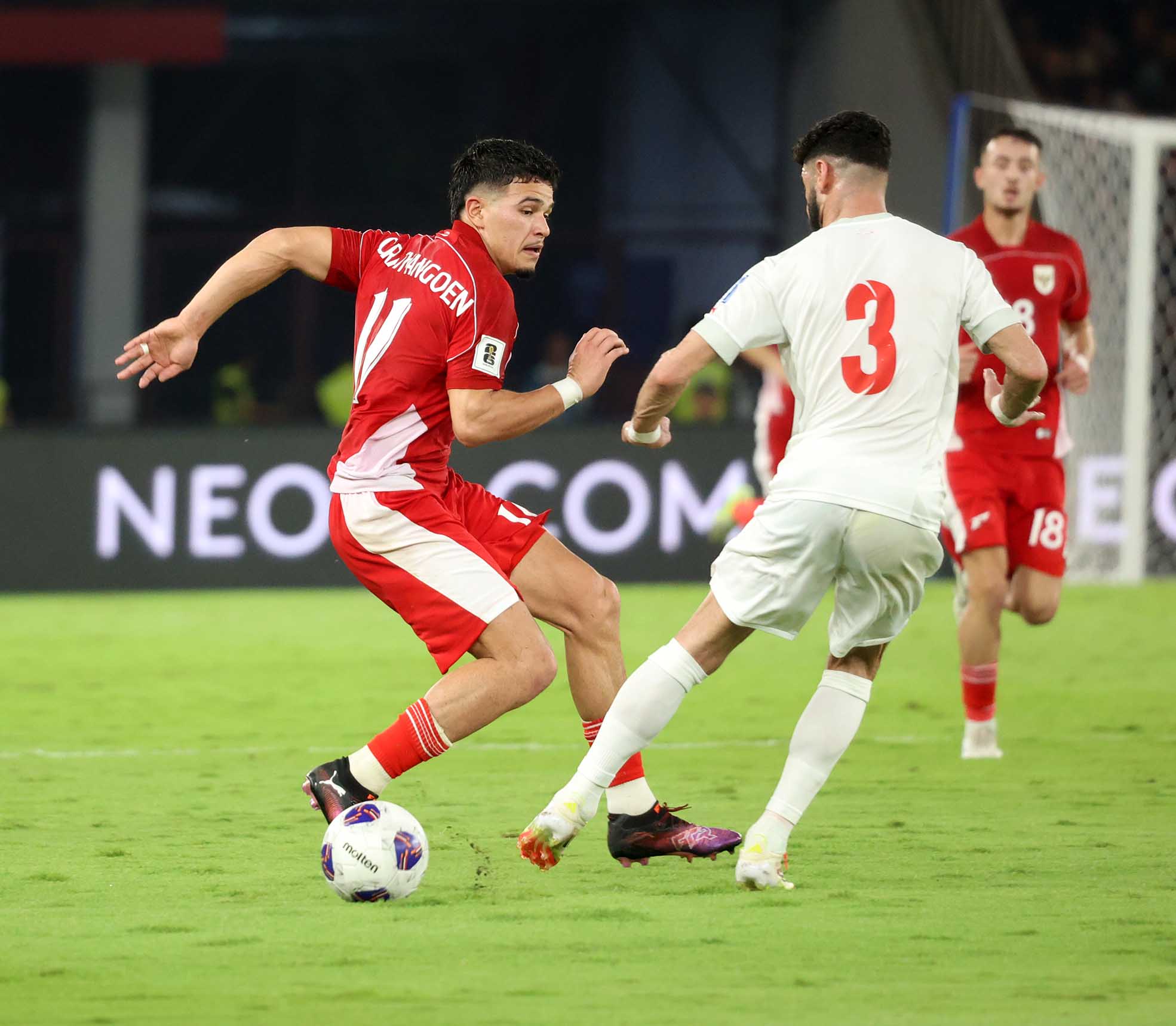 Pemain Indonesia, Ragnar Oratmangoen (11) saat pertandingan putaran ketiga Kualifikasi Piala Dunia 2026 di Stadion Utama Gelora Bung Karno, Senayan, Jakarta, Selasa, 25 Maret 2025.