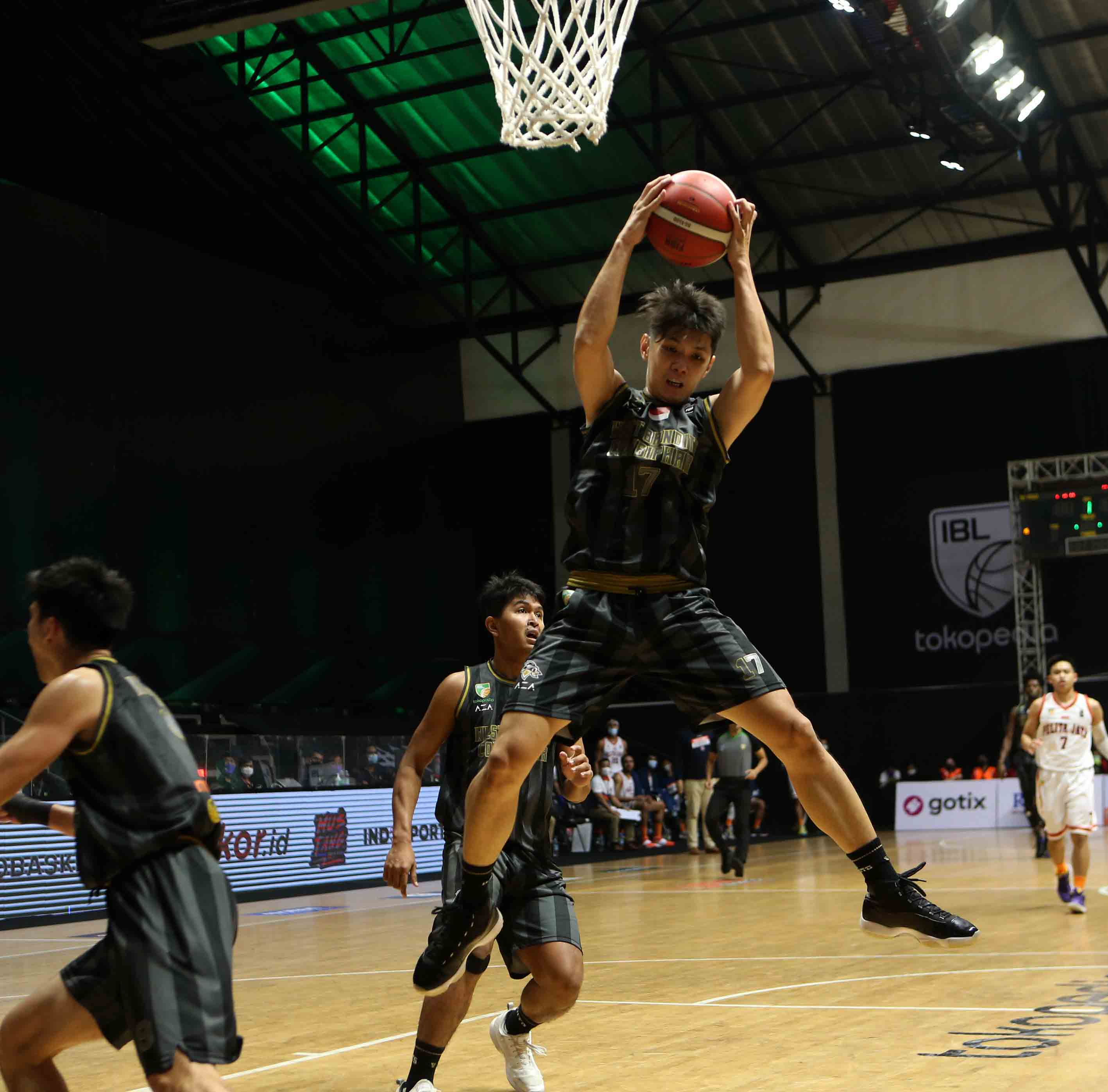Mei Joni (17) pemain West Bandits Combiphar Solo berhasil mengamankan bola dari pemain Pelita Jaya Bakrie. West Bandits Combiphar Solo melawan Pelita Jaya Bakrie pada pertandingan Seri 1 Jakarta Indonesian Basketball League (IBL) 2022 di Hall Basket GBK, Jakarta, Jum’at (21/1/2022). West Bandits Combiphar Solo kalah oleh Pelita Jaya Bakrie dengan skor 81-87. (Photo : Erly Bahtiar)