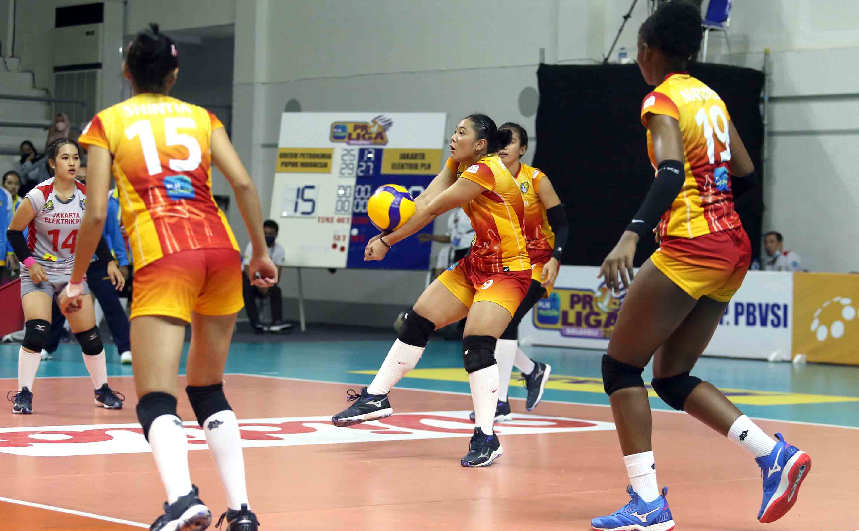Gresik Petrokimia Pupuk Indonesia berhasil menang atas JAKARTA ELEKTRIK PLN dengan skor 3-0. (25-17, 29-27,25-17) pertandingan Proliga 2022 putaran kedua yang berlangsung di GOR Padepokan Voli Jenderal Polisi Kunarto, Sentul, Jumat (25/2/2022). (Foto : Erly Bahtiar/Sportsmoment.id)