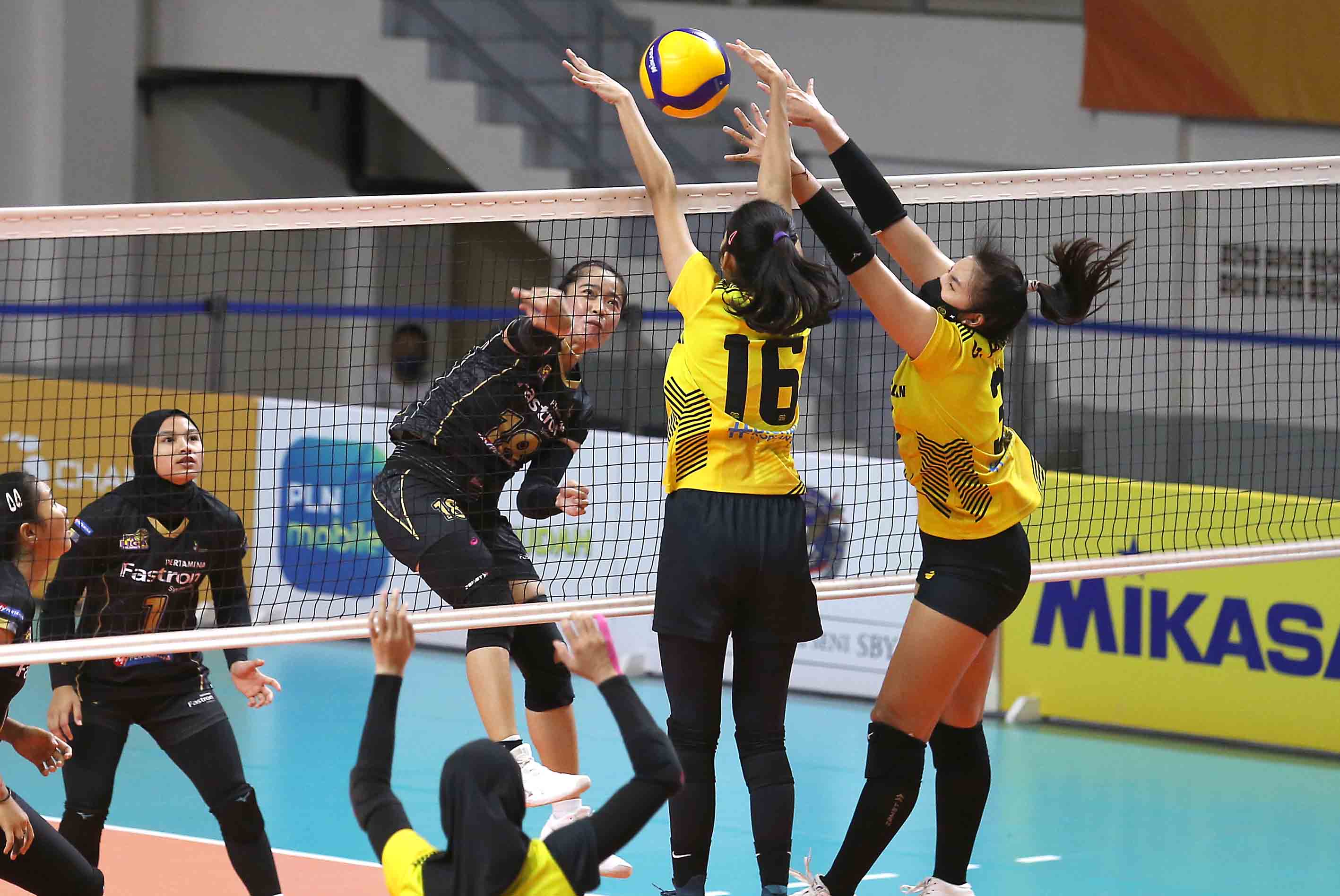 Jakarta Pertamina Fastron berhasil menang atas Jakarta Mandiri Popsivo Polwan dengan skor 3-0 (25-21, 25-22, 25-21). Pertandingan Proliga 2022 putaran kedua minggu ke 7 yang berlangsung di GOR Padepokan Voli Jenderal Polisi Kunarto, Sentul, Minggu (16/1/2022). (Foto : Erly Bahtiar/Sportsmoment.id)