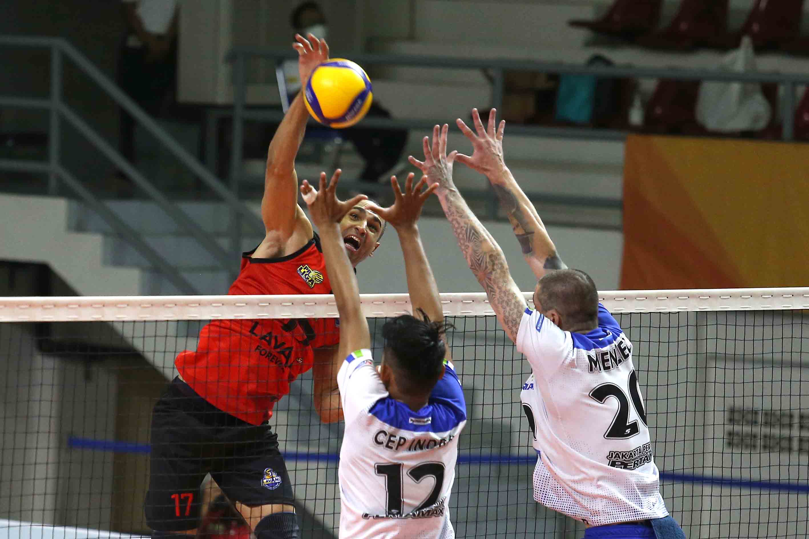 Tim bola voli putra Bogor LaVani berhasil menang atas Jakarta Pertamina Pertamax dengan skor 3-0 (25-19, 25-19, 25-16). Pertandingan Proliga 2022 putaran pertama yang berlangsung di GOR Padepokan Voli Jenderal Polisi Kunarto, Sentul, Jumat (25/2/2022). (Foto : Erly Bahtiar/Sportsmoment.id)
