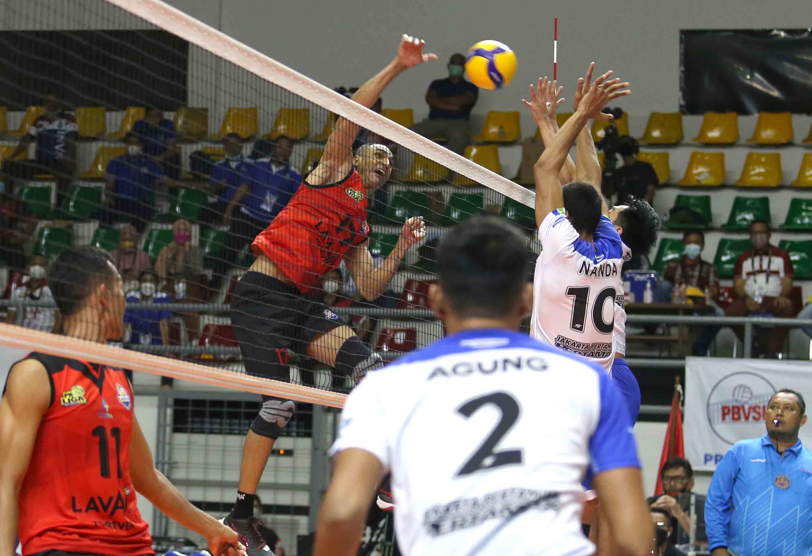 Tim bola voli putra Bogor LaVani berhasil menang atas Jakarta Pertamina Pertamax dengan skor 3-0 (25-19, 25-19, 25-16). Pertandingan Proliga 2022 putaran pertama yang berlangsung di GOR Padepokan Voli Jenderal Polisi Kunarto, Sentul, Jumat (25/2/2022). (Foto : Erly Bahtiar/Sportsmoment.id)