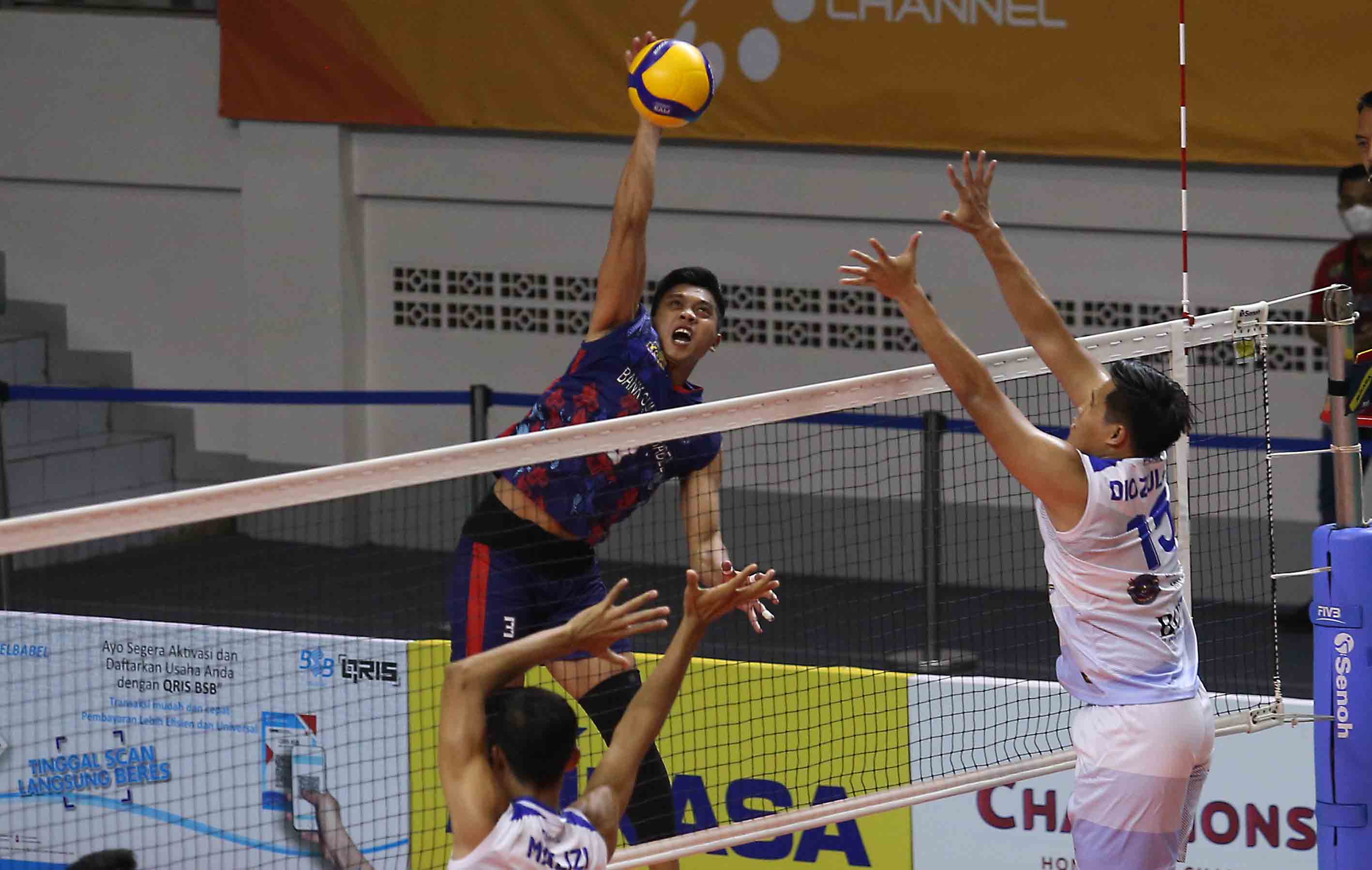 Palembang Bank Sumsel Babel gagal mengalahkan Tim bola voli putra Bogor LaVani dengan skor 1-3 (20-25, 29-27, 19-25, 25-27). Pertandingan Proliga 2022 putaran kedua yang berlangsung di GOR Padepokan Voli Jenderal Polisi Kunarto, Sentul, Jumat (4/3/2022). (Foto : Erly Bahtiar/Sportsmoment.id)