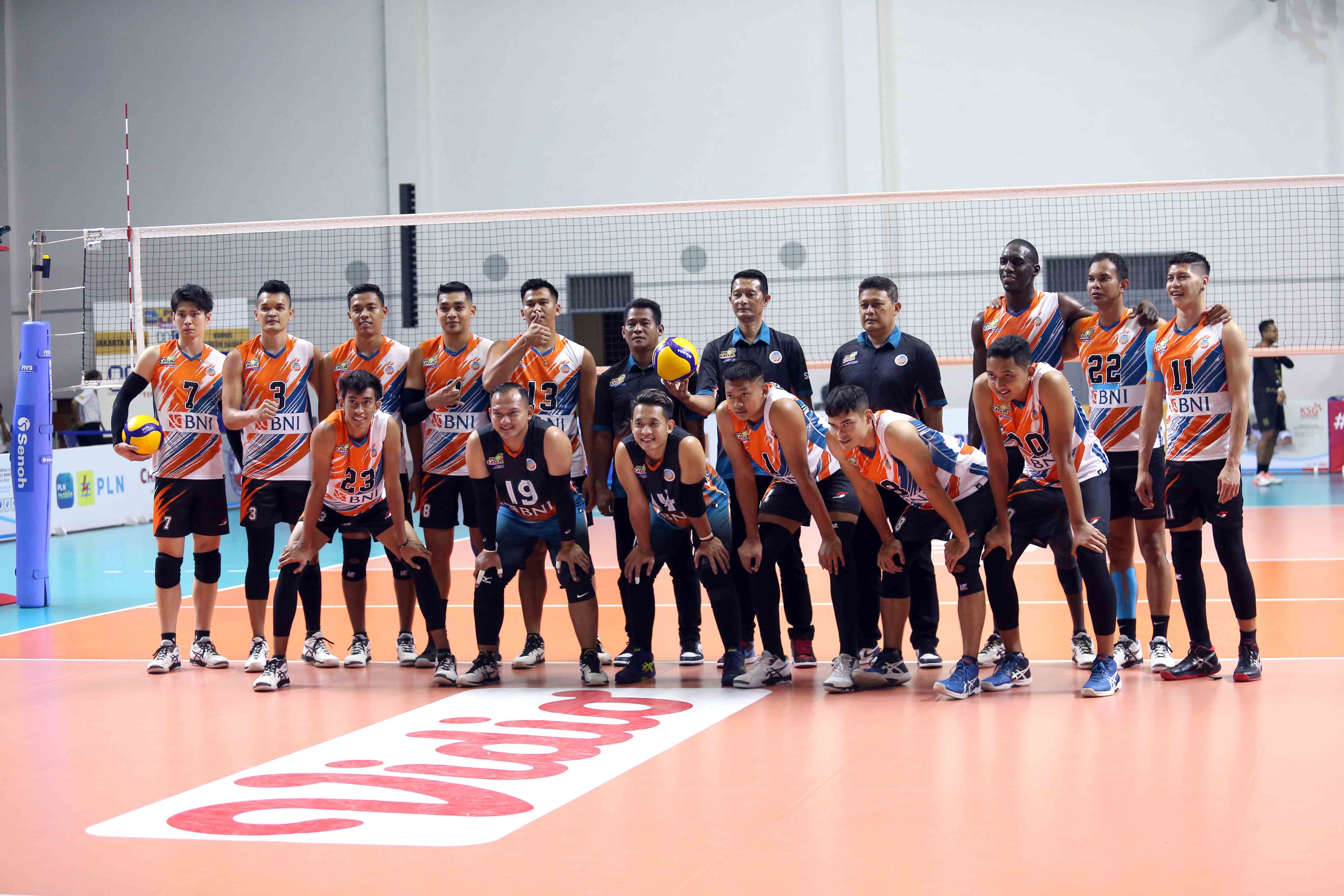 Tim bola voli putra Jakarta BNI membuktikan diri layak melaju ke babak final four Proliga 2022 seusai mengalahkan tim pendatang baru Kudus Sukun Badak. Berlaga di di GOR Kawah Candradimuka Padepokan Voli Jenderal Polisi Kunarto, Sentul, Jumat (4/3), Jakarta BNI 46 menang dengan skor 3-1 (25-20, 25-23, 24-26, 25-17) atas Kudus Sukun Badak. (Foto: Erly Bahtiar/sportsmoment.id)