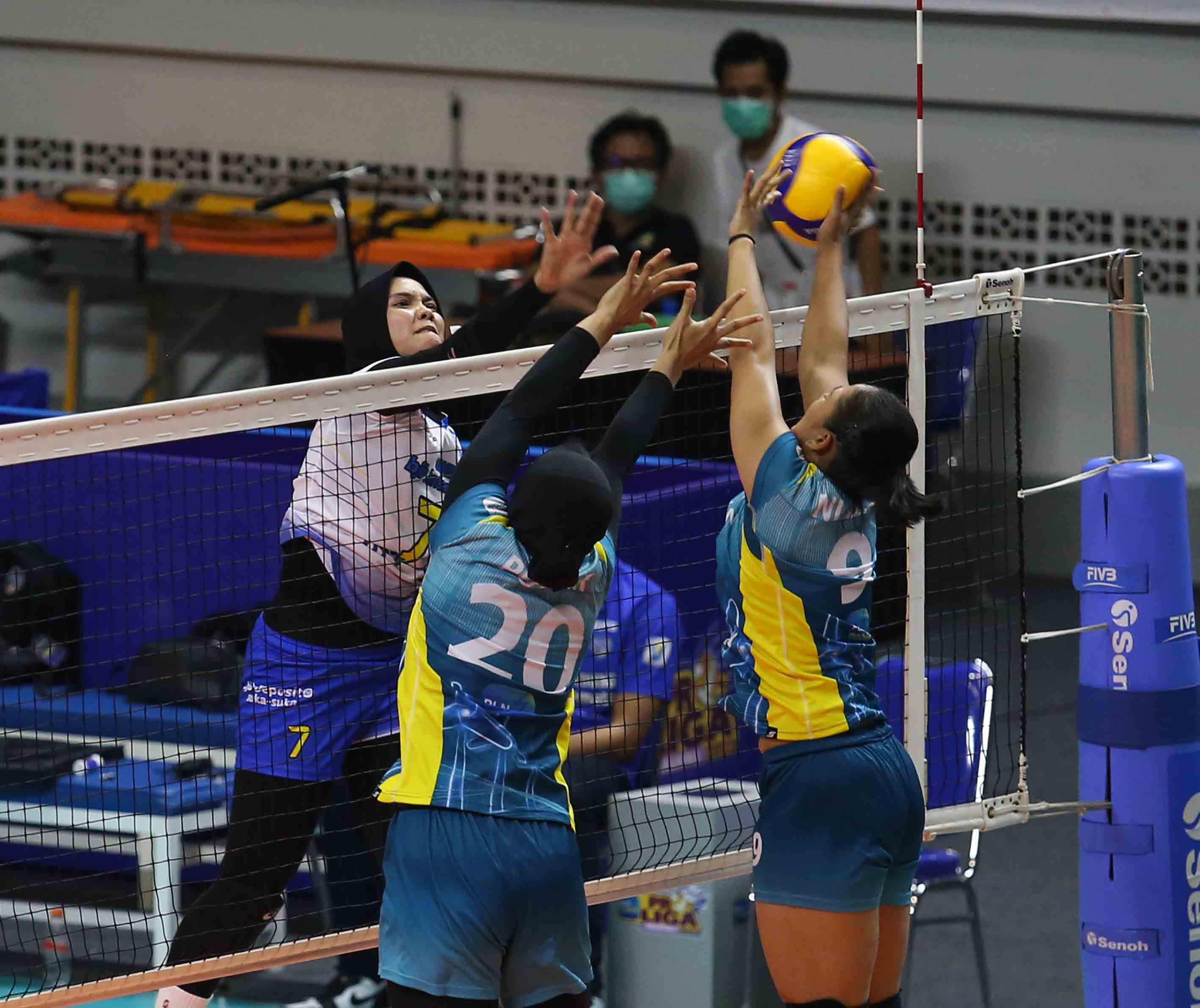 Nandita Ayu Salsabilla (7) pemain bola voli Bandung BJB Tandamata mengarahkan pukulan smashnya ke area lawan. Tim bola voli putri Bandung BJB Tandamata berhasil menang atas Jakarta Elektrik PLN dengan skor 3-2 (25-22, 25-23,18-25, 21-25, 15-10). Pertandingan Proliga 2022 putaran kedua yang berlangsung di GOR Padepokan Voli Jenderal Polisi Kunarto, Sentul, Jumat (18/2/2022). (Foto : Erly Bahtiar/Sportsmoment.id)