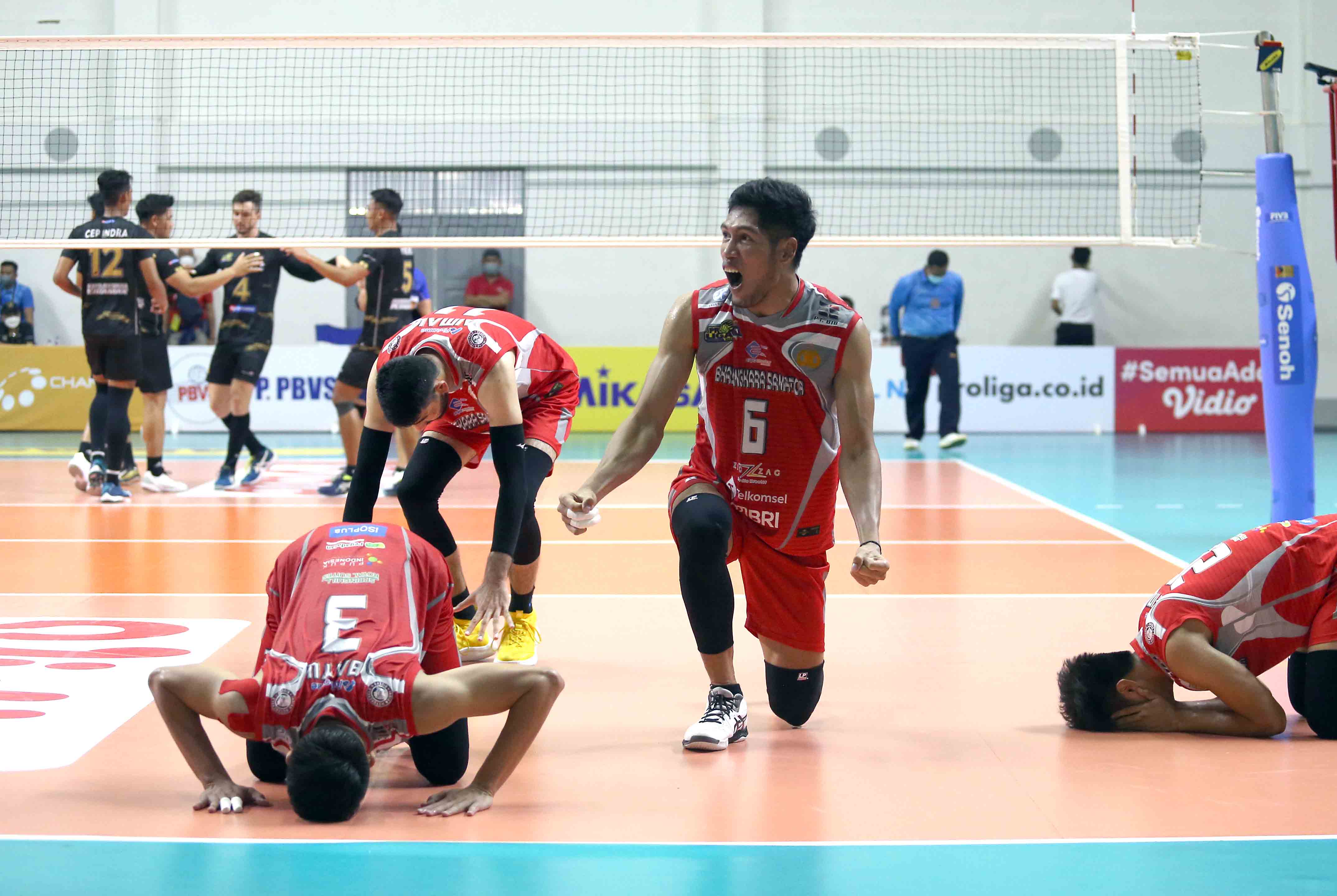 Juara bertahan Surabaya Bhayangkara Samator (SBS) berpeluang besar lolos ke babak grand final PLN Mobile Proliga 2022, setelah mengalahkan Jakarta Pertamina Pertamax (JPX) 3-0 (25-19, 25-21, 25-23) pada hari terakhir final four seri pertama di GOR Kawah Candradimuka Padepokan Voli Jenderal Polisi Kunarto, Sentul, Bogor, Minggu (13/3/2022). (Foto : Erly Bahtiar/Sportsmoment.id)