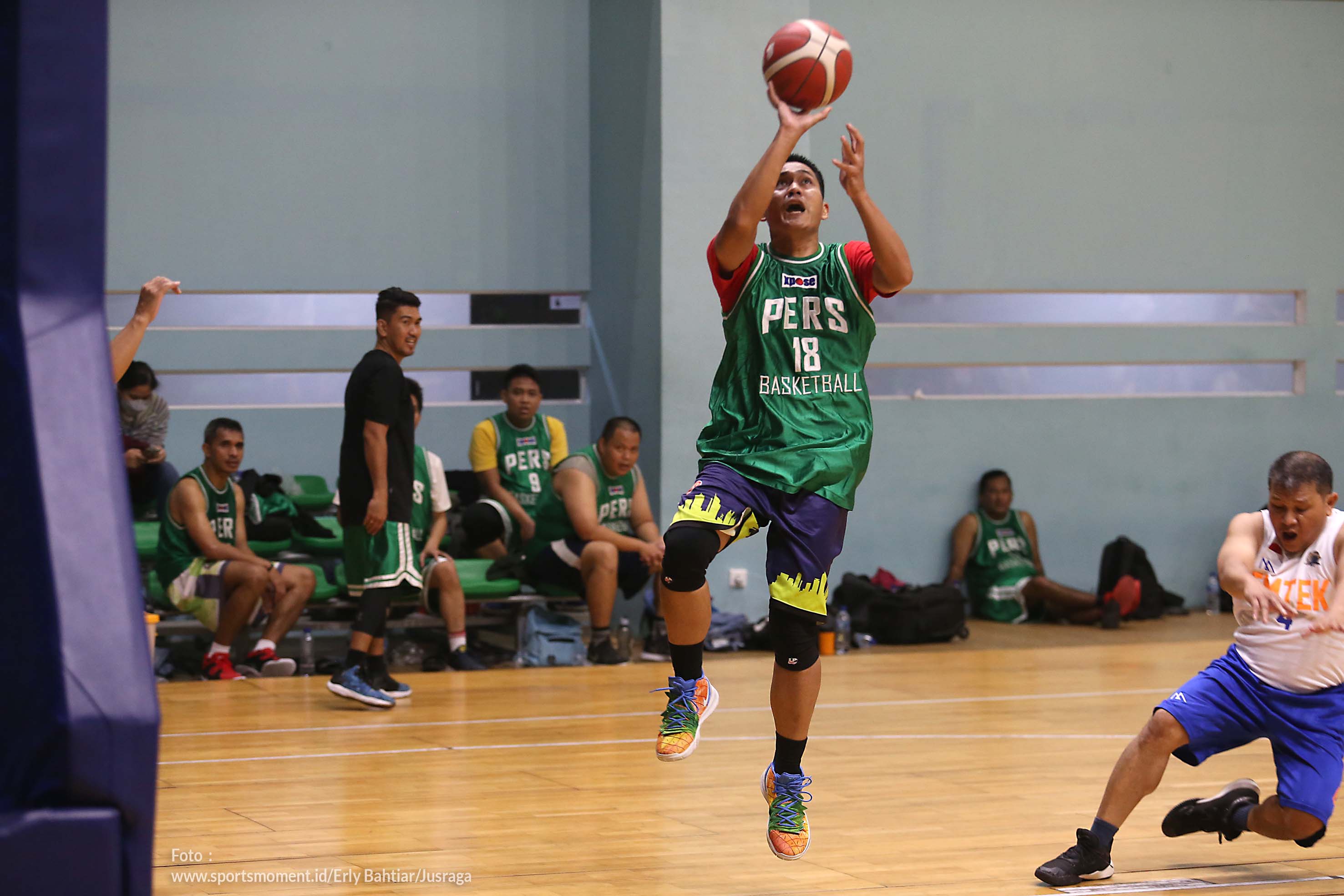 Hardat, Jurnalis Tvone yang bergabung dalam komunitas JUSRAGA (Jurnalis Peduli dan Suka Olahraga) beraksi di pagelaran Dewa United Surabaya Fun Games bersama awak media di GBK Arena, Jumat (17/12) sore. Acara main basket bareng ini menjadi momen silaturahmi jelang bergulurnya IBL 2022 yang direncanakan mulai pada 15 Januari di Hall Basket Senayan, Jakarta.