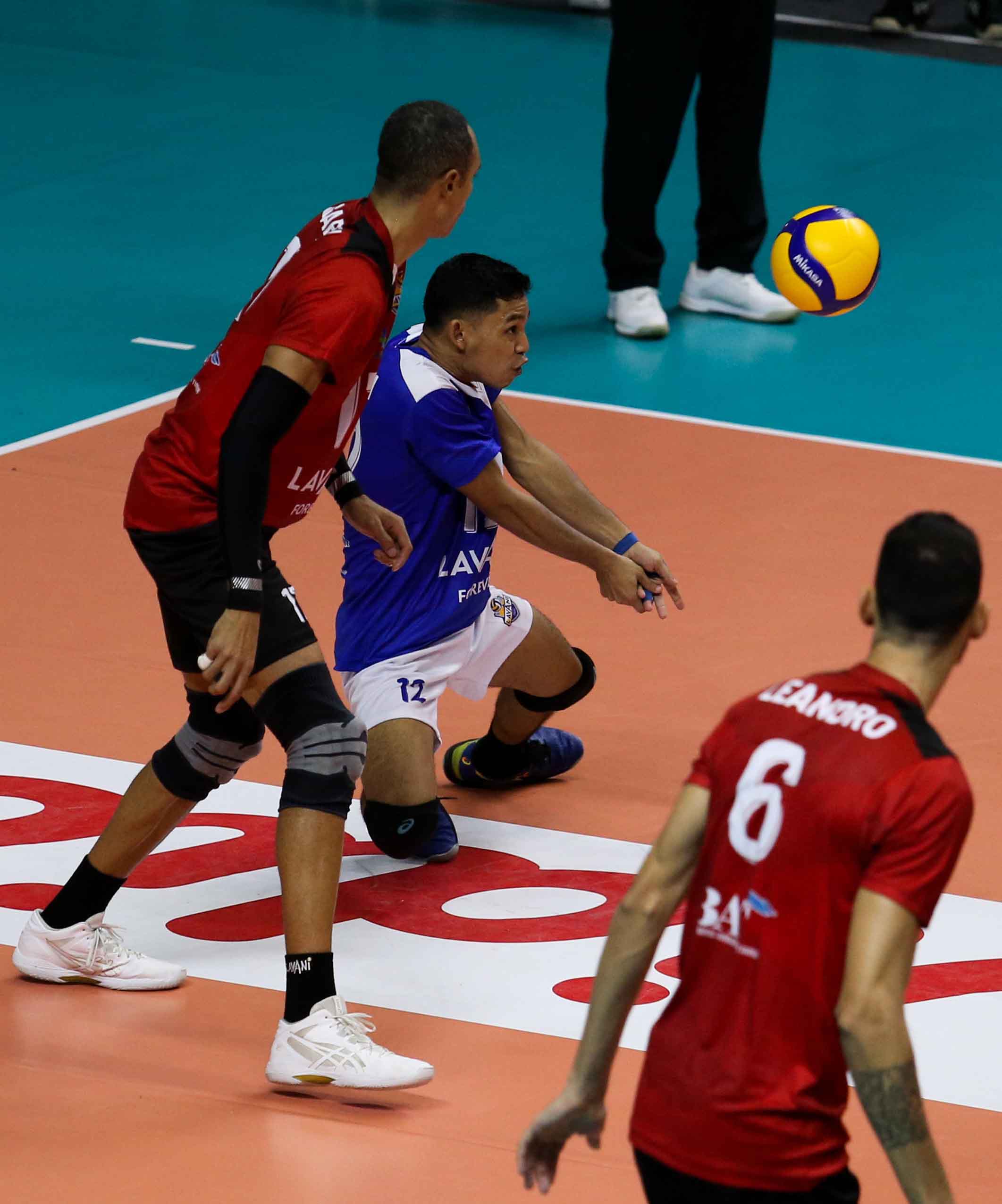 Irpan (12) pemain bola voli Bogor Lavani menerima bola lawan. Bogor Lavani berhasil menang dari tim bola voli putra Jakarta BNI 46 dengan skor 3-1 (25-17, 21-25, 25-15, 25-16) pada Pertandingan Proliga 2022 putaran pertama yang berlangsung di GOR Padepokan Voli Jenderal Polisi Kunarto, Sentul, Minggu (23/1/2022). (Foto : Erly Bahtiar/Sportsmoment.id)